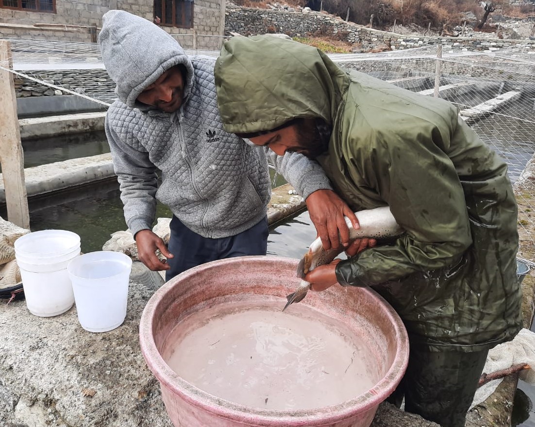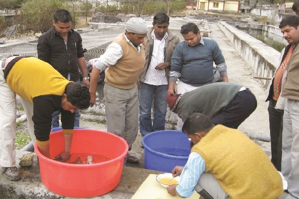 Farmer has to stock adequate number of seeds for better results. Farmers must stock fingerlings of minimum of 70 MM size and stocking density of 10,000 fingerlings per hectare of pond. Department of Fisheries Uttrakhand provide seeds of six carp varieties from its Fish seed Hatcheries/Farms situated at district Udhamsingh Nagar and Dehradun and also from different fish rearing units established through different schemes.